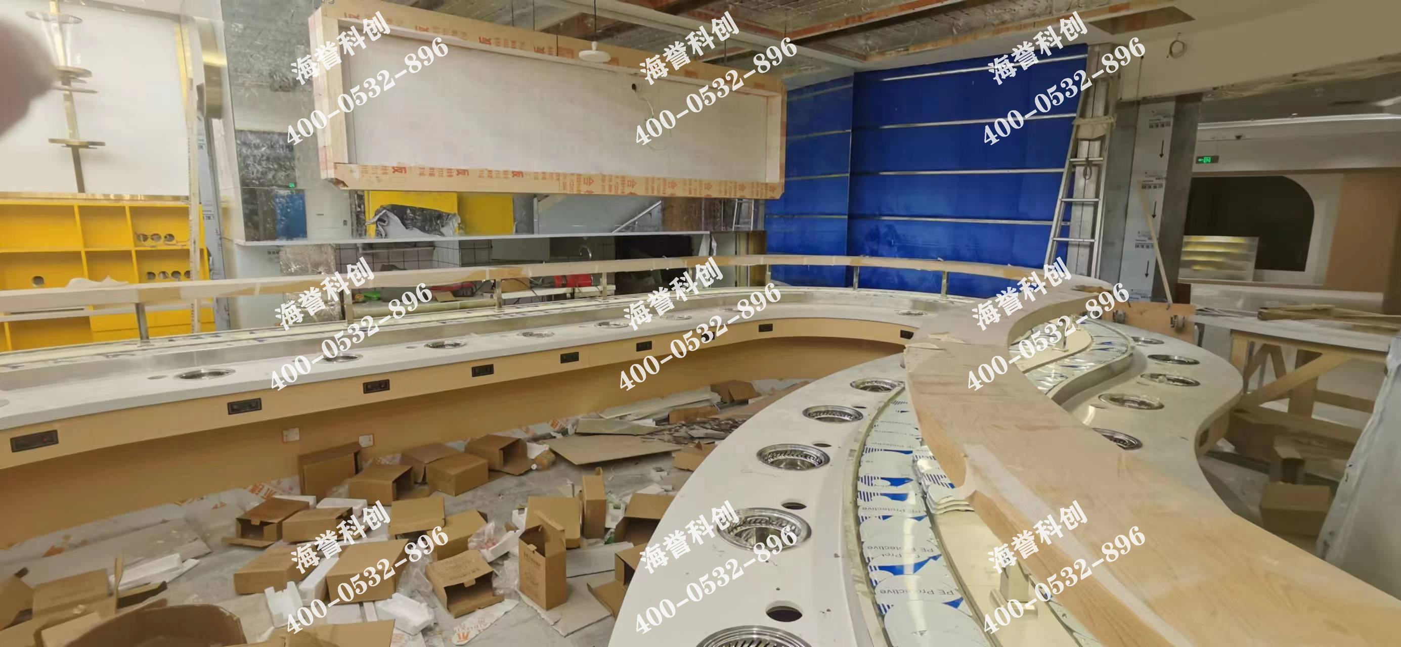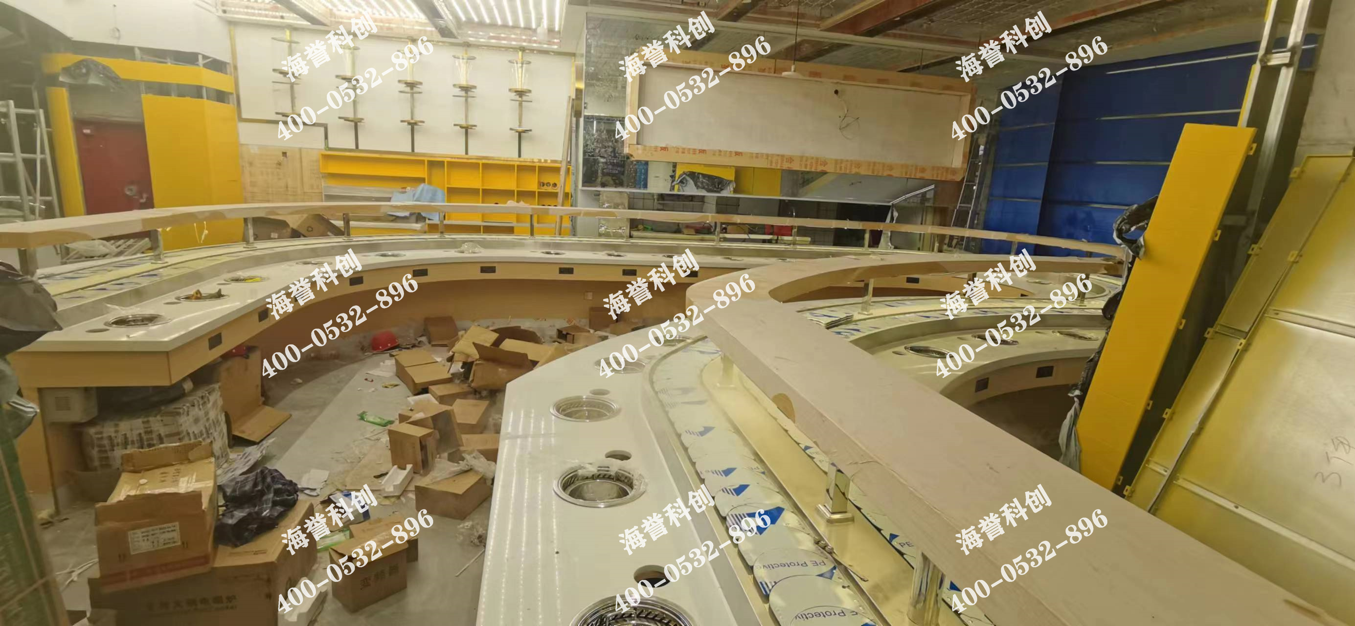 設(shè)計(jì)師根據(jù)店面實(shí)際布局設(shè)計(jì)設(shè)備線走向,本次安裝案例是大型異形設(shè)備線的一次完美示范,海譽(yù)科創(chuàng)可非標(biāo)定制各種形狀,配合餐廳合理動(dòng)線設(shè)計(jì)。并在此基礎(chǔ)上留出走動(dòng)空間,配置足夠數(shù)量的餐位,以最大程度滿足餐廳的經(jīng)營(yíng)需求。本套設(shè)備的各個(gè)部位所用的材質(zhì)、顏色等均能自由定制,可與餐廳的裝潢風(fēng)格相契合,達(dá)到視覺(jué)上的最佳統(tǒng)一?;剞D(zhuǎn)線自動(dòng)傳送眾多菜品,節(jié)省人工點(diǎn)菜時(shí)間和人力支出,湯鍋周圍安裝排煙罩,可以即時(shí)帶走火鍋涮制過(guò)程中產(chǎn)生的水汽油煙,餐廳內(nèi)空氣清新,顧客的身上更是不會(huì)有多余的火鍋氣味,如此的時(shí)尚無(wú)煙小火鍋餐廳,想必其人氣定不會(huì)低迷。