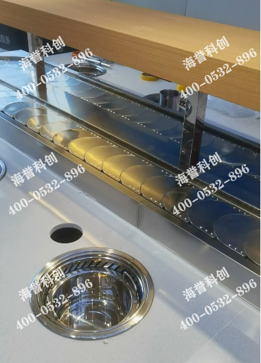 窄長(zhǎng)型店面,設(shè)備線居中安置并連接至出餐口,將小店面的經(jīng)營(yíng)效率最大化。單涮小火鍋繼承了傳統(tǒng)火鍋的口味優(yōu)勢(shì),食材、蘸料、鍋底都和傳統(tǒng)火鍋沒有什么差別,不依賴大廚,三者都有成熟的產(chǎn)品供應(yīng)鏈可依靠,能根據(jù)不同地域地口味偏好靈活選擇、調(diào)整。單涮小火鍋以單人餐位為主,就餐是一人一鍋的方式,小湯鍋?zhàn)屽伒椎姆序v速度快,就餐時(shí)間短,快捷方便。本套設(shè)備自帶排煙裝置,保證店內(nèi)空氣清新,提升競(jìng)爭(zhēng)力;軌道葉片采用海譽(yù)科創(chuàng)專利產(chǎn)品三星譽(yù)金鋼,堅(jiān)韌耐用,承載多個(gè)餐盤無壓力,表面光潔利于清理,設(shè)備使用效果有保證。