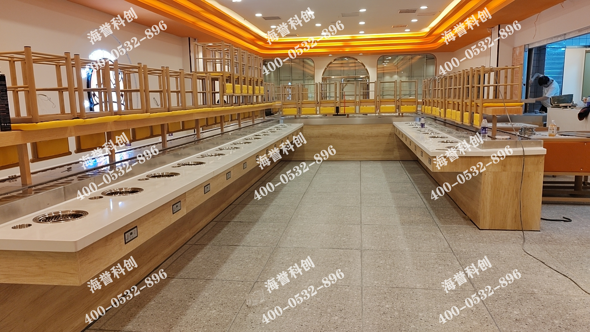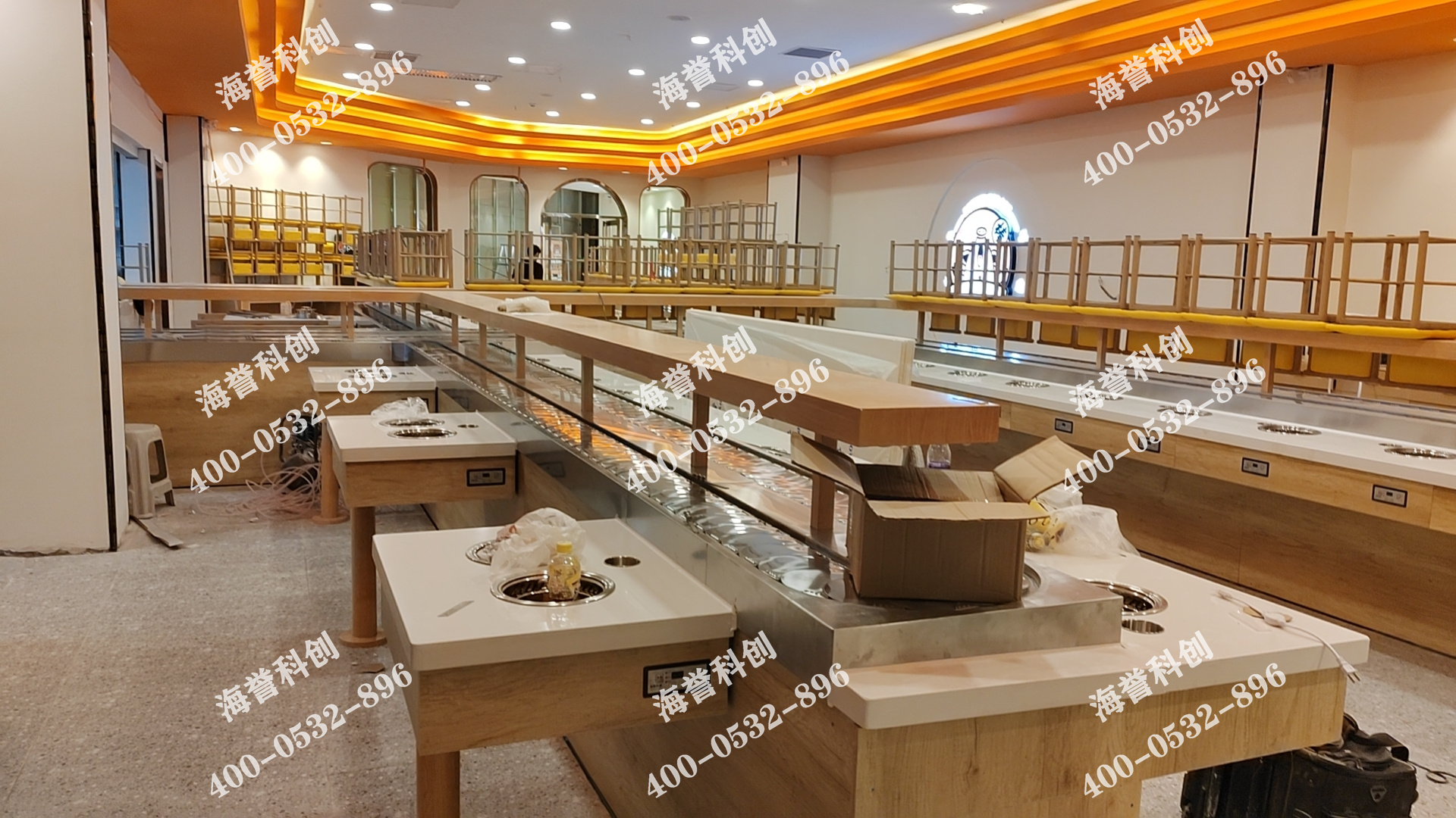 海譽(yù)科創(chuàng)是有著十余年從業(yè)經(jīng)驗(yàn)的智能餐飲回轉(zhuǎn)設(shè)備源頭廠家,產(chǎn)品包括單涮小火鍋、涮烤一體小火鍋、回轉(zhuǎn)壽司、智能送餐小火車等,合作伙伴遍布全國,產(chǎn)品遠(yuǎn)銷越南、泰國、美國、澳大利亞等國。海譽(yù)科創(chuàng)擁有獨(dú)立產(chǎn)品研發(fā)團(tuán)隊(duì)和專屬生產(chǎn)車間,從產(chǎn)品的設(shè)計(jì)、研發(fā)、生產(chǎn),到銷售、運(yùn)輸、安裝等環(huán)節(jié)都有專人把控,一站式服務(wù),為每一位合作伙伴提供完善的技術(shù)支持。專業(yè)設(shè)計(jì)師會根據(jù)店面平面圖設(shè)計(jì)合適的設(shè)備線走向,海譽(yù)科創(chuàng)可非標(biāo)定制各種形狀,設(shè)備線每個(gè)部位所用材質(zhì)均可自由選擇,真正實(shí)現(xiàn)個(gè)性化定制,安裝團(tuán)隊(duì)全國免費(fèi)上門安裝,還能為初次創(chuàng)業(yè)的合作伙伴提供免費(fèi)的咨詢指導(dǎo)。如果您也想要定制一套中高端餐飲回轉(zhuǎn)設(shè)備,歡迎直接聯(lián)系我們。