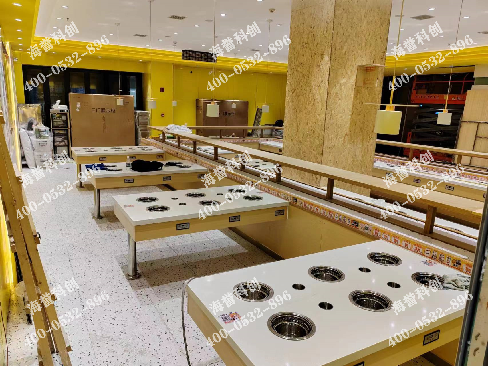 海譽科創(chuàng)合作伙伴單涮無煙小火鍋設(shè)備配備加濕器安裝完成。