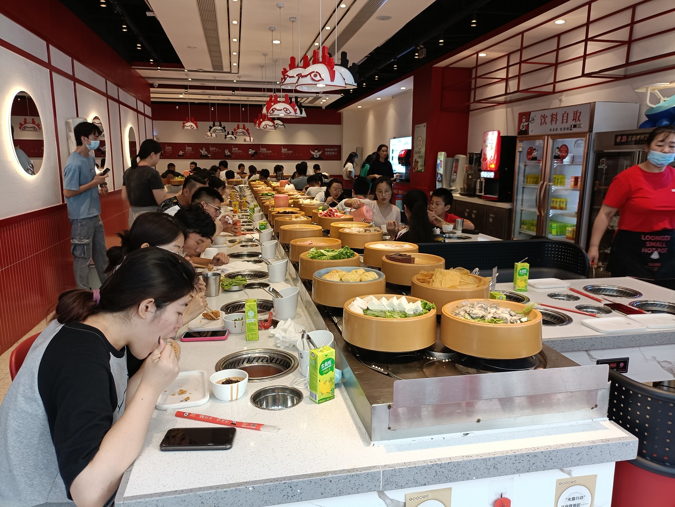 繞開柱子、墻面、樓梯等障礙物后,在留出足夠的走動空間的基礎(chǔ)上確定能做多長的回轉(zhuǎn)線和回轉(zhuǎn)線的具體形狀(回轉(zhuǎn)線都是能非標(biāo)定制各種形狀的),然后再確定餐位設(shè)置的多少,每個餐位至少留出半米的空間。此外,整間旋轉(zhuǎn)小火鍋店的動線設(shè)計也很重要,要兼顧到收銀臺、小料臺、飲料機、餐具柜等設(shè)備的位置,考慮的是怎樣讓顧客走少的路獲得好的就餐體驗,以及服務(wù)員上鍋底、收拾餐位等,旋轉(zhuǎn)小火鍋店的回轉(zhuǎn)線設(shè)計與動線設(shè)計息息相關(guān),因此一定要與廠家溝通好。