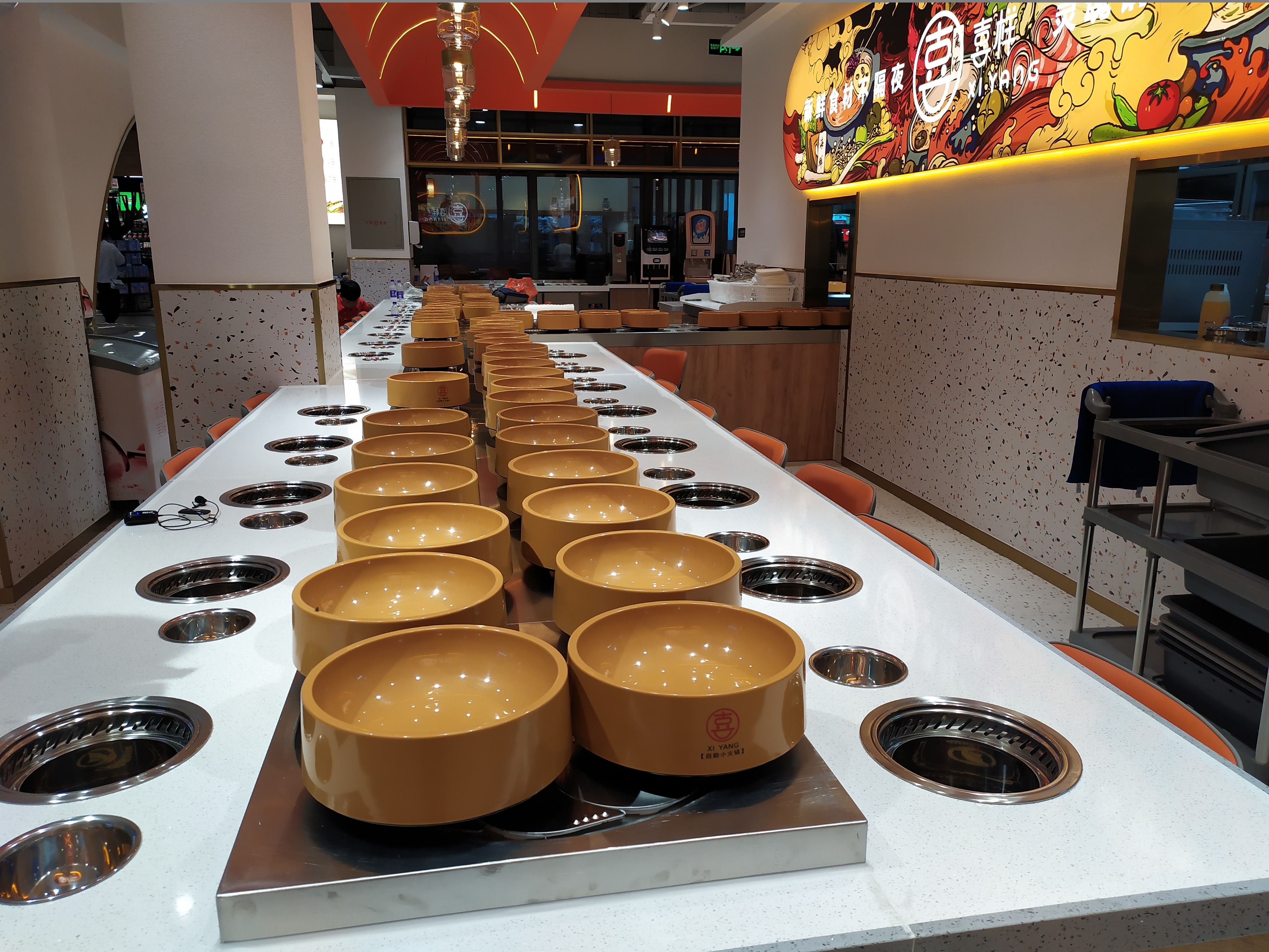 譽(yù)滿簽自助無煙涮烤旋轉(zhuǎn)小火鍋設(shè)備安裝完成,日常爆滿排隊(duì)!更多