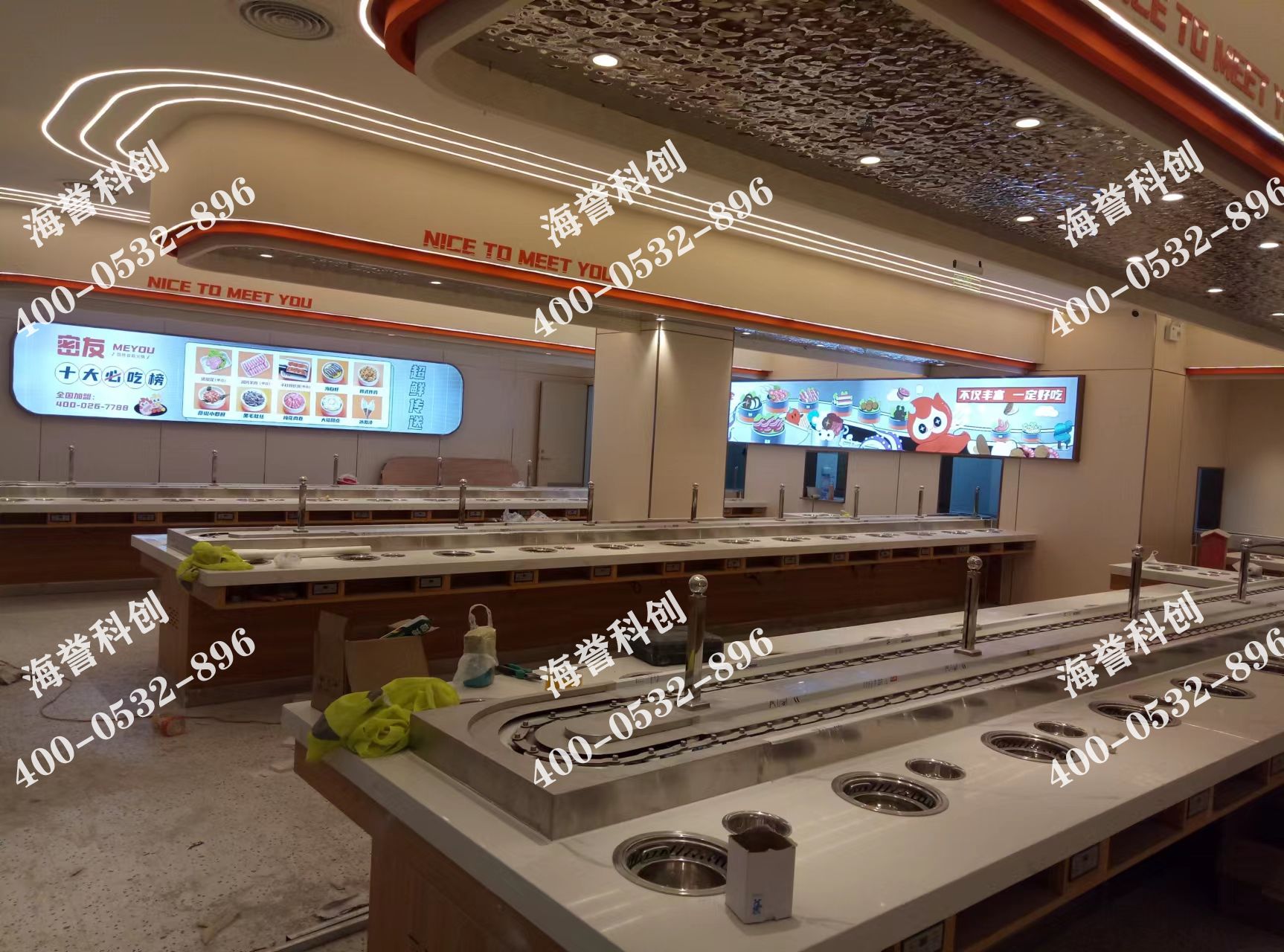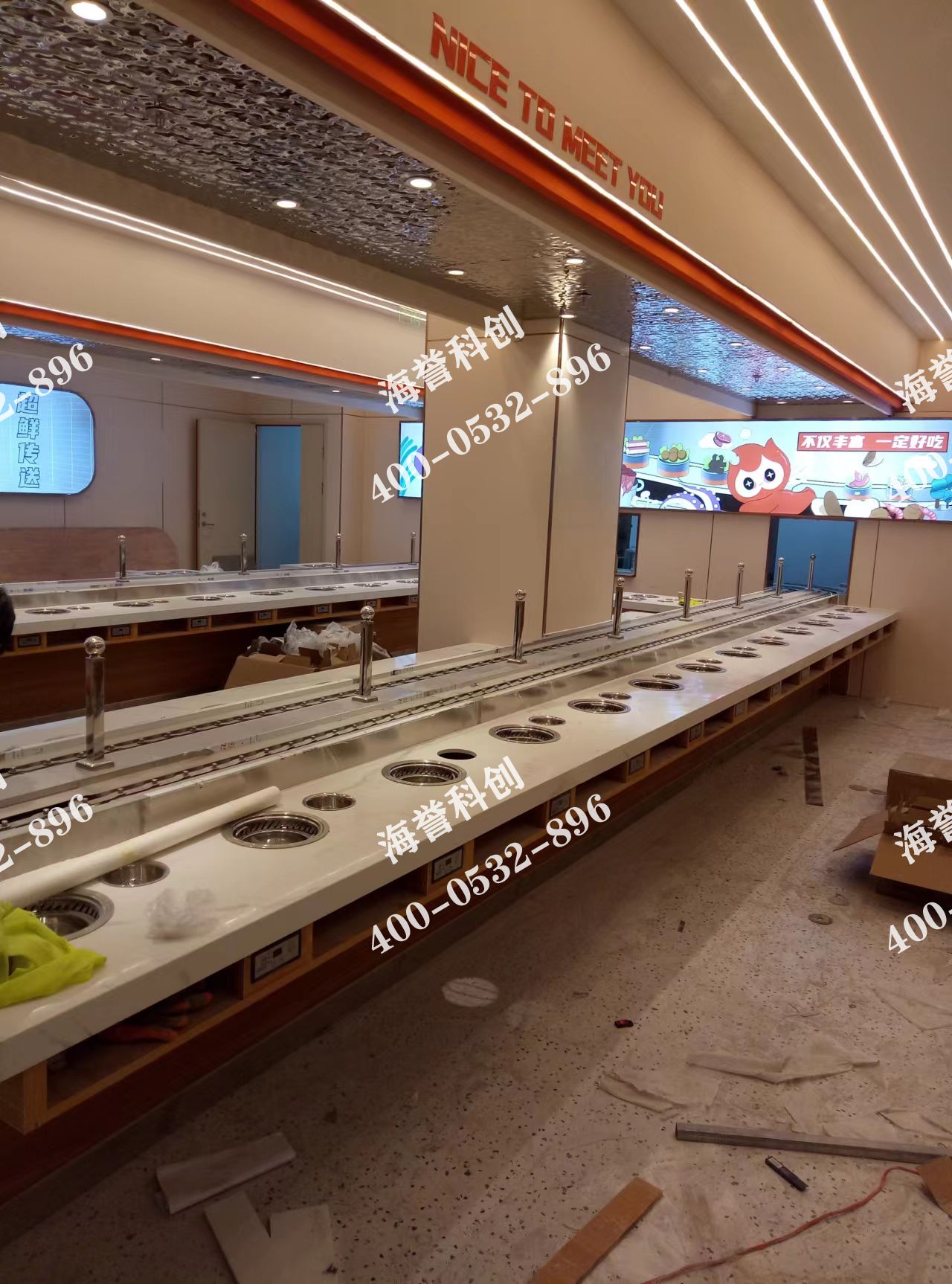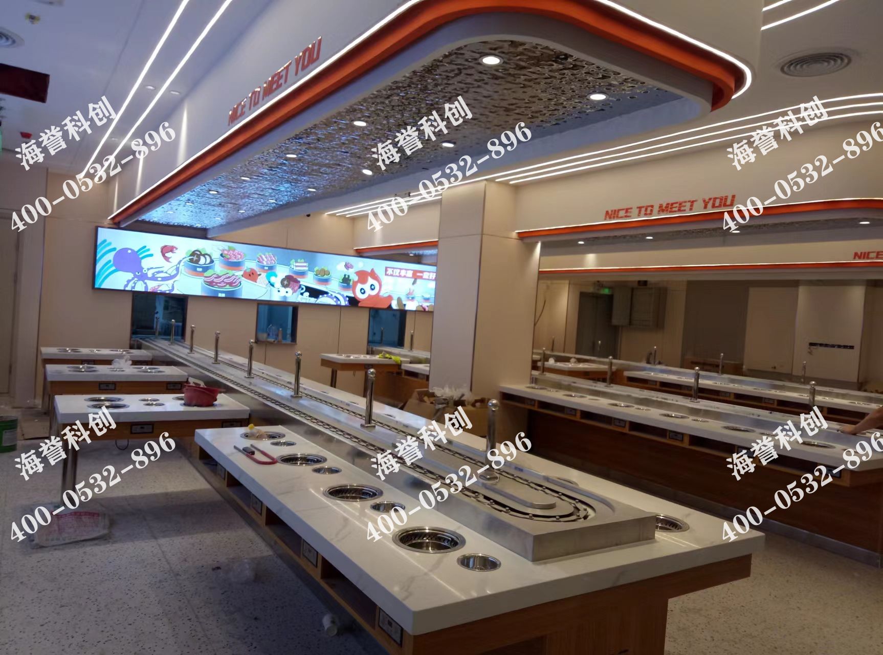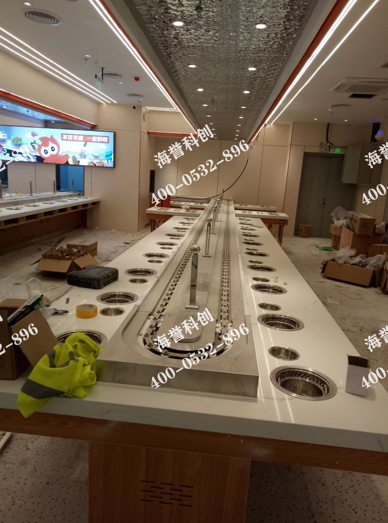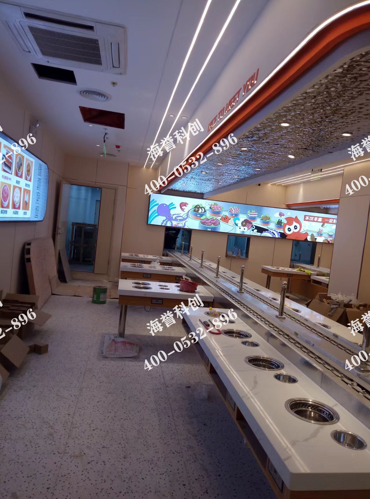 海譽(yù)科創(chuàng)江蘇淮安旋轉(zhuǎn)小火鍋店鋪安裝調(diào)試完成 兩條直線進(jìn)廚房
