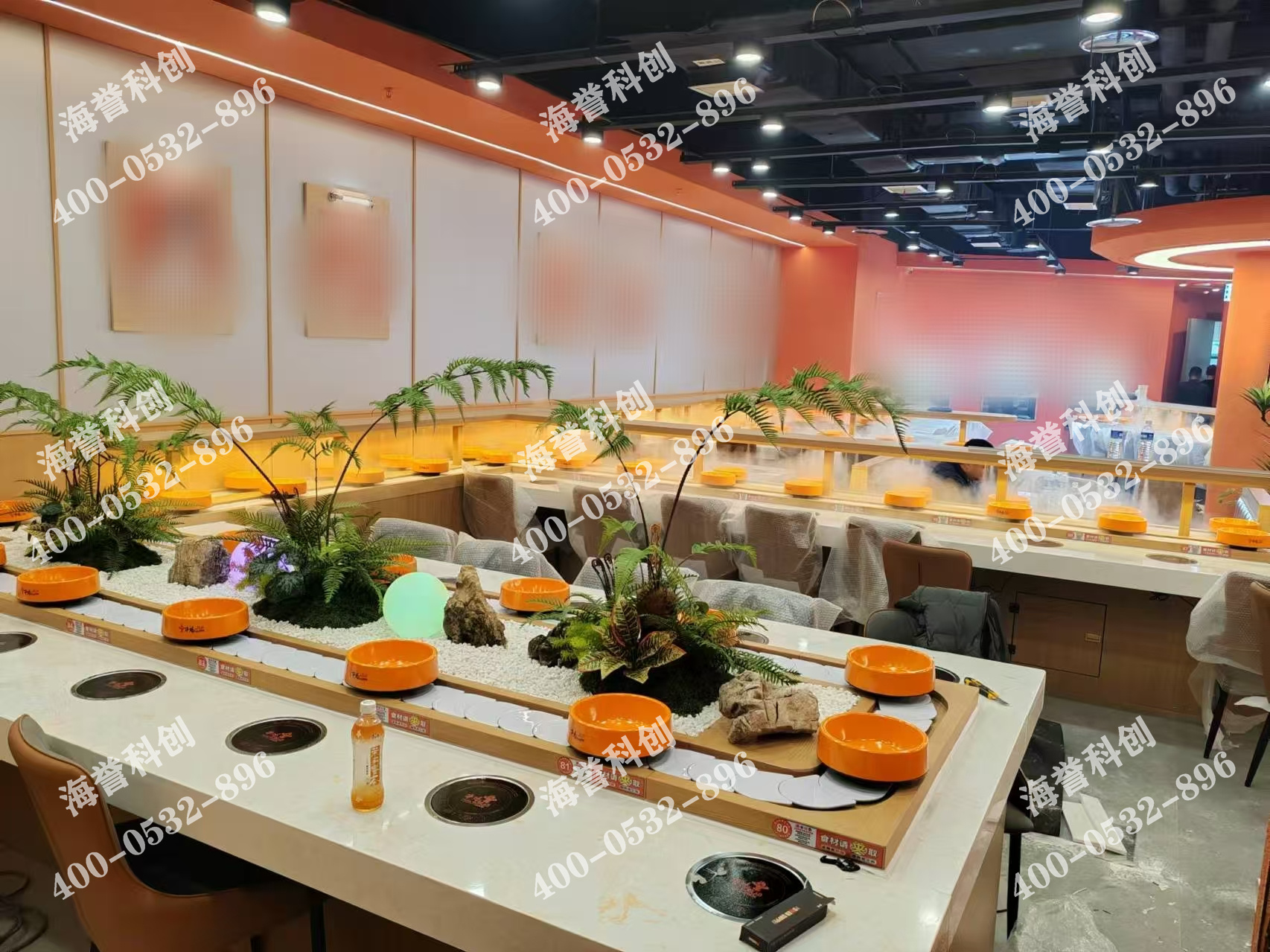 專業(yè)設(shè)計(jì)師根據(jù)店面平面圖打造回轉(zhuǎn)線走向,在符合餐廳基礎(chǔ)動(dòng)線原理的基礎(chǔ)上預(yù)留合適的走動(dòng)空間,配置數(shù)量足夠的餐位,同時(shí)配合店面裝潢所需的圓弧形景觀臺(tái)造型打造出部分異形回轉(zhuǎn)線,海譽(yù)科創(chuàng)可非標(biāo)定制各種形狀。店內(nèi)燈光根據(jù)回轉(zhuǎn)線的位置而定,保證光線更充足的就餐環(huán)境。本套設(shè)備配備噴霧型加濕器,霧化后的水汽細(xì)膩,每隔三五分鐘噴霧一次即可為回轉(zhuǎn)帶上的各種新鮮菜品即時(shí)補(bǔ)水保鮮,有助于減少菜品損耗,控制食材成本?;剞D(zhuǎn)設(shè)備的臺(tái)面、柜體、葉片等所用材質(zhì)、顏色等均可自由選擇,以便契合店面裝修風(fēng)格,座椅顏色也可與之配合,達(dá)成和諧統(tǒng)一的視覺效果,利于旋轉(zhuǎn)小火鍋店的場(chǎng)景化打造,加強(qiáng)品牌形象。整套設(shè)備外觀光潔,所用材質(zhì)堅(jiān)固耐用,進(jìn)口電機(jī)提供核心動(dòng)力,使用壽命長(zhǎng)。