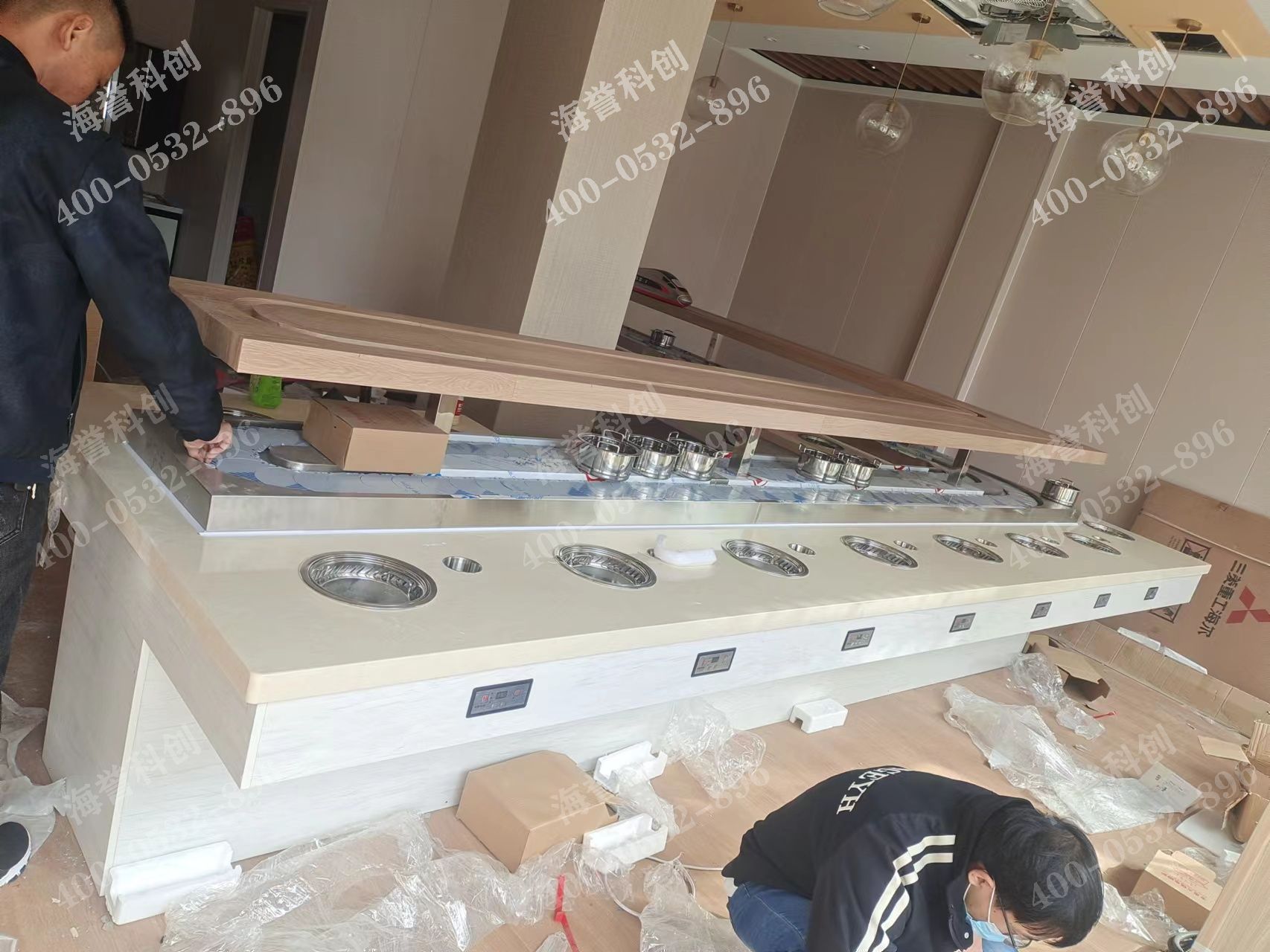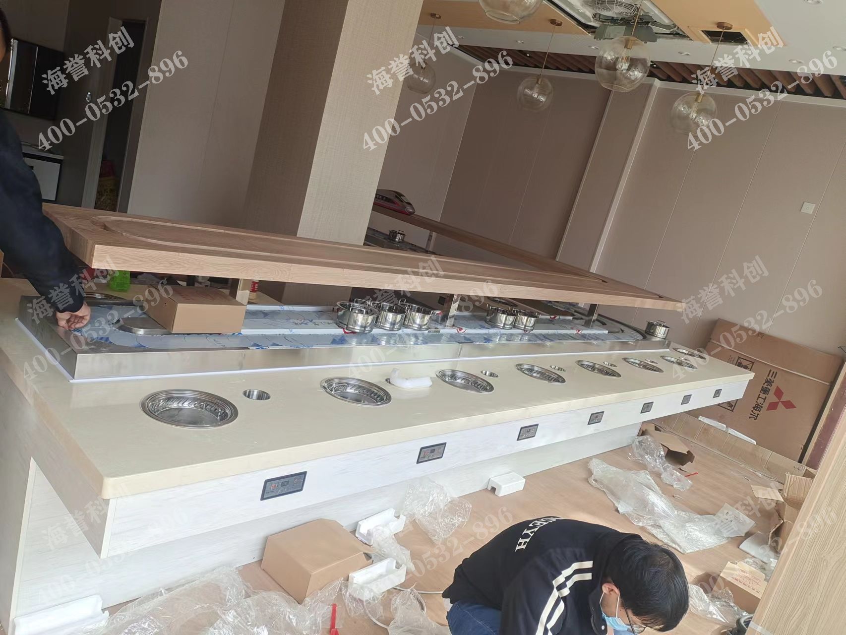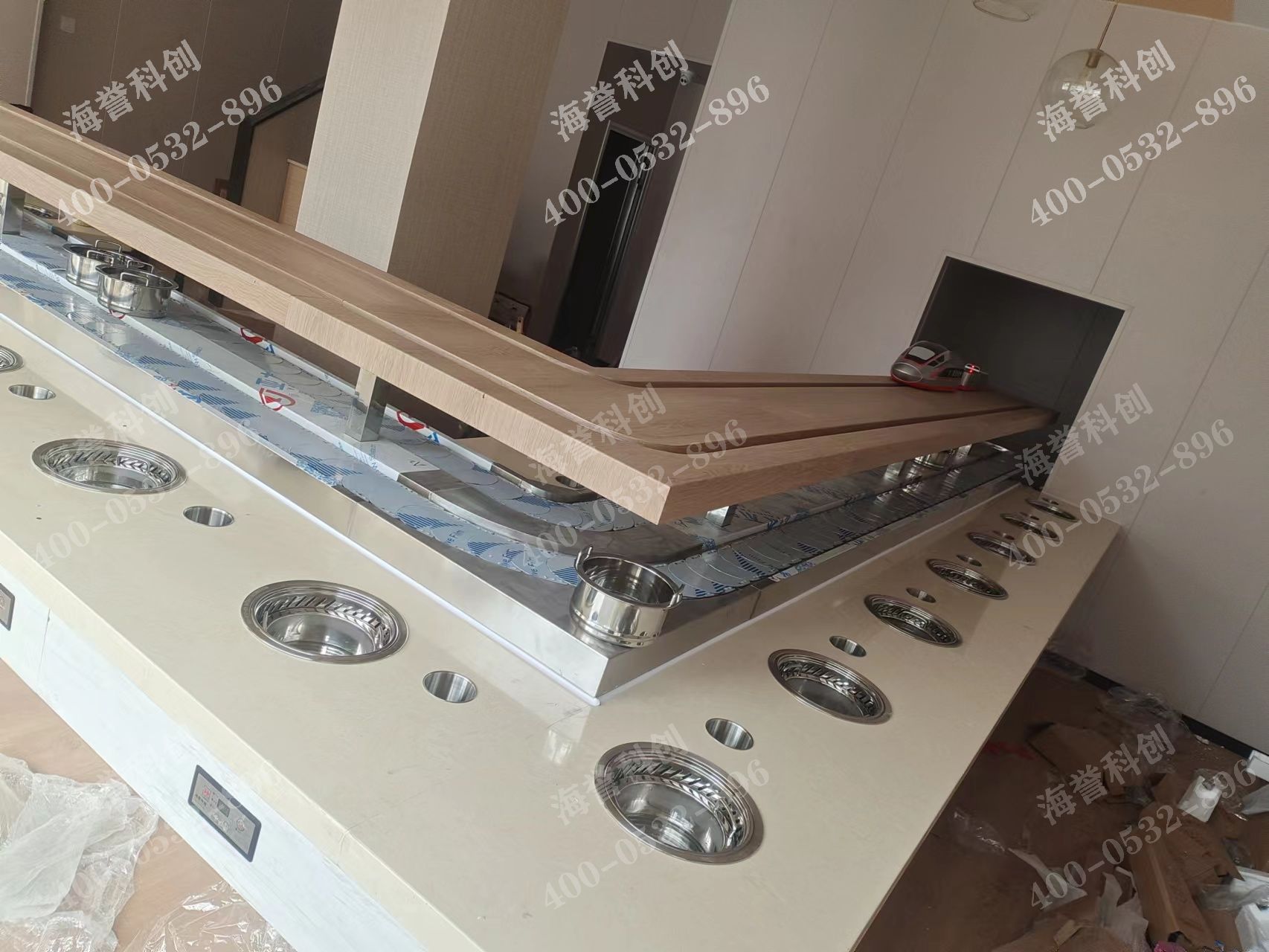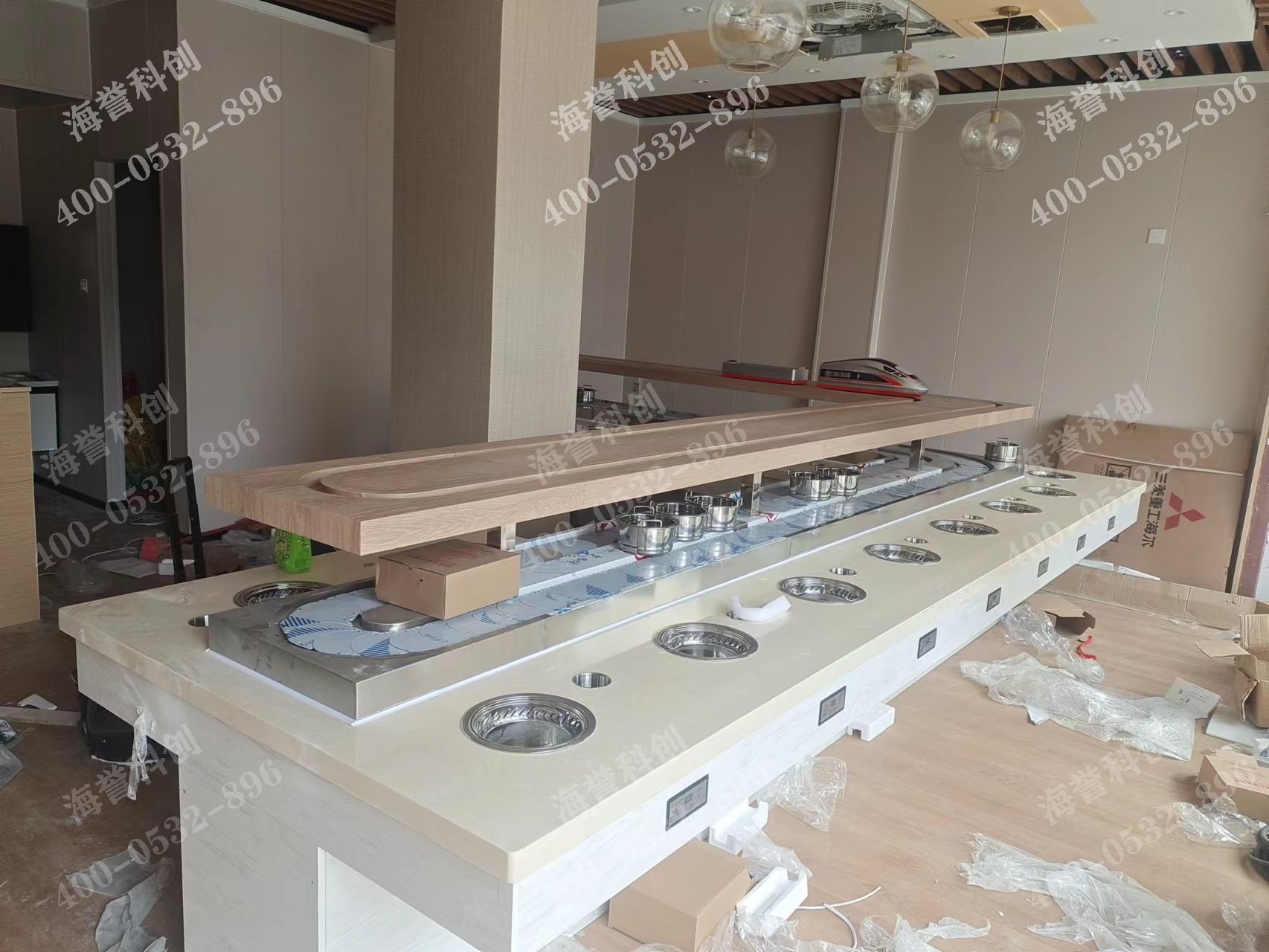 海譽(yù)科創(chuàng)河北單涮無(wú)煙小火鍋配置智能送餐小火車安裝完成