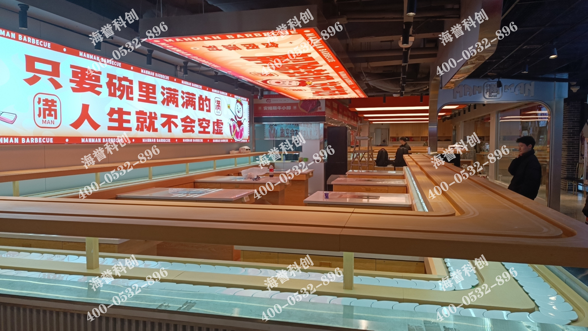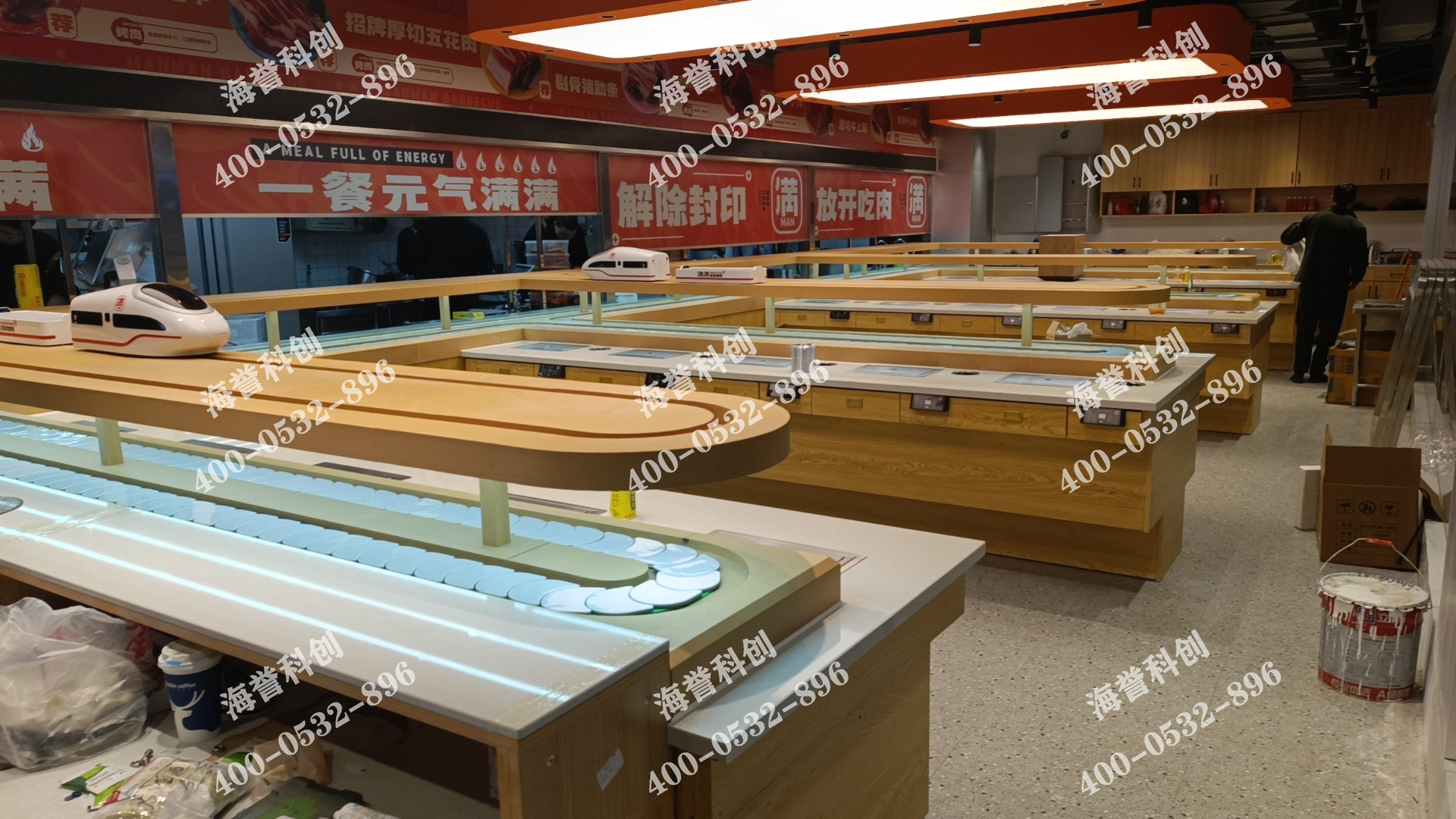 海譽科創(chuàng)湖北武漢自助烤肉餐廳搭載智能送餐小火車安裝完成。